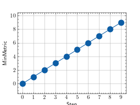 >>> # Example plotting multiple values >>> from torchmetrics.aggregation import MinMetric >>> metric = MinMetric() >>> values = [ ] >>> for i in range(10): ... values.append(metric(i)) >>> fig_, ax_ = metric.plot(values)