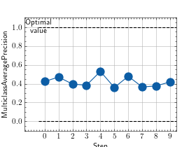 >>> # Example plotting multiple values >>> import torch >>> from torchmetrics.classification import MulticlassAveragePrecision >>> metric = MulticlassAveragePrecision(num_classes=3) >>> values = [ ] >>> for _ in range(10): ... values.append(metric(torch.randn(20, 3), torch.randint(3, (20,)))) >>> fig_, ax_ = metric.plot(values)