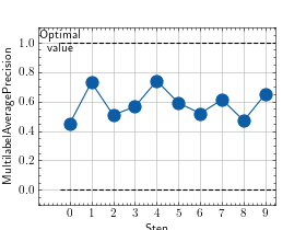 >>> # Example plotting multiple values >>> import torch >>> from torchmetrics.classification import MultilabelAveragePrecision >>> metric = MultilabelAveragePrecision(num_labels=3) >>> values = [ ] >>> for _ in range(10): ... values.append(metric(torch.rand(20,3), torch.randint(2, (20,3)))) >>> fig_, ax_ = metric.plot(values)