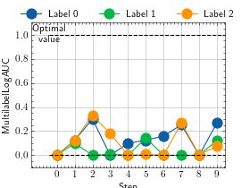 >>> # Example plotting multiple values >>> import torch >>> from torchmetrics.classification import MultilabelLogAUC >>> metric = MultilabelLogAUC(num_labels=3) >>> values = [ ] >>> for _ in range(10): ... values.append(metric(torch.rand(20,3), torch.randint(2, (20,3)))) >>> fig_, ax_ = metric.plot(values)