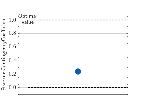 predsandtarget, respectively.Pearson’s Contingency Coefficient is a symmetric coefficient, i.e. \(Pearson(preds, target) = Pearson(target, preds)\).