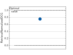 >>> import torch >>> from torchmetrics.retrieval import RetrievalNormalizedDCG >>> # Example plotting a single value >>> metric = RetrievalNormalizedDCG() >>> metric.update(torch.rand(10,), torch.randint(2, (10,)), indexes=torch.randint(2,(10,))) >>> fig_, ax_ = metric.plot()