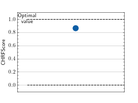 >>> # Example plotting a single value >>> from torchmetrics.text import CHRFScore >>> metric = CHRFScore() >>> preds = ['the cat is on the mat'] >>> target = [['there is a cat on the mat', 'a cat is on the mat']] >>> metric.update(preds, target) >>> fig_, ax_ = metric.plot()