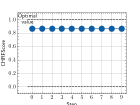 >>> # Example plotting multiple values >>> from torchmetrics.text import CHRFScore >>> metric = CHRFScore() >>> preds = ['the cat is on the mat'] >>> target = [['there is a cat on the mat', 'a cat is on the mat']] >>> values = [ ] >>> for _ in range(10): ... values.append(metric(preds, target)) >>> fig_, ax_ = metric.plot(values)