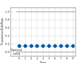 >>> # Example plotting multiple values >>> from torchmetrics.text import TranslationEditRate >>> metric = TranslationEditRate() >>> preds = ['the cat is on the mat'] >>> target = [['there is a cat on the mat', 'a cat is on the mat']] >>> values = [ ] >>> for _ in range(10): ... values.append(metric(preds, target)) >>> fig_, ax_ = metric.plot(values)